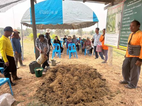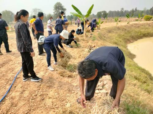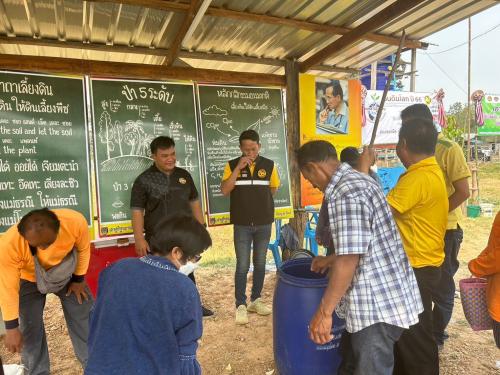 กิจกรรมเอามื้อสามัคคี "หิ้วปิ่นโต ห่อข้าว ไปเอามื้อ เอาแฮง แปลงโคก หนอง นา" นายสุบิน มีแคน บ้านหัวนา ตำบลหนองจิก อำเภอบรบือ จังหวัดมหาสารคาม ซึ่งมีกิจกรรมทำน้ำหมักจุรินทรีย์หน่อกล้วย กิจกรรมทำแซนวิชปลา กิจกรรมทำปุ๋ยหมัก กิจกรรมปลูกต้นไม้ และกิจกรรมห่มดิน